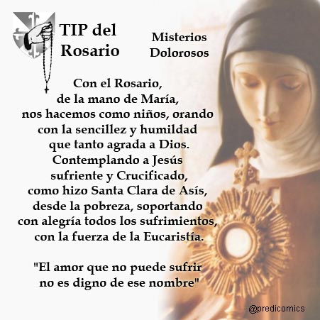 Sin los Misterios Dolorosos no se entiende el Amor. La Cruz es la prueba, y las llagas de Jesús son los signos de la victoria sobre el pecado y la muerte. Nuestro sufrimiento ofrecido por amor, tiene sentido con Cristo.